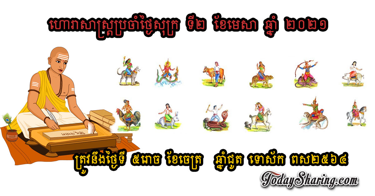 ហោរាសាស្រ្ត ប្រចាំថ្ងៃ សុក្រ ទី ២ ខែ មេសា ឆ្នាំ ២០២១ ត្រូវនឹងថ្ងៃទី ៥រោច ខែចេត្រ ឆ្នាំជូត ទោស័ក ពស២៥៦៤