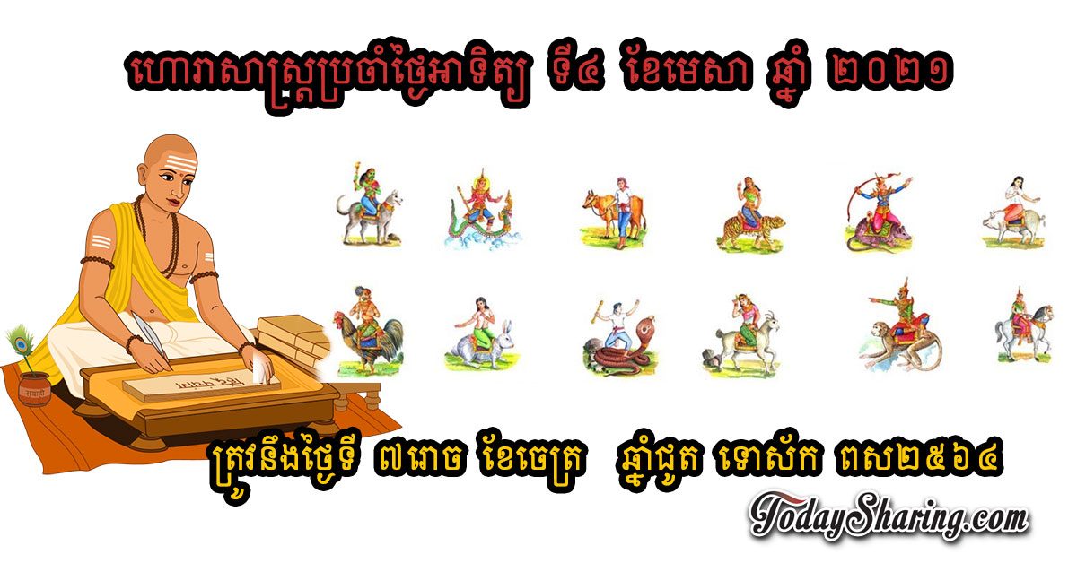 ហោរាសាស្រ្ត ប្រចាំថ្ងៃ អាទិត្យ ទី ៤ ខែ មេសា ឆ្នាំ ២០២១ ត្រូវនឹងថ្ងៃទី ៧រោច ខែចេត្រ ឆ្នាំជូត ទោស័ក ពស២៥៦៤