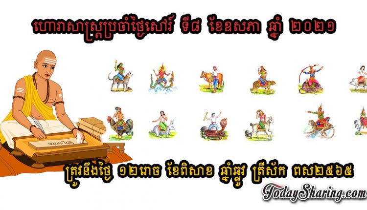 ហោរាសាស្រ្ត ប្រចាំថ្ងៃ សៅរ៍ ទី ៨ ខែ ឧសភា ឆ្នាំ ២០២១ ត្រូវនឹងថ្ងៃ ១២រោច ខែពិសាខ ឆ្នាំឆ្លូវ ត្រីស័ក ពស២៥៦៥