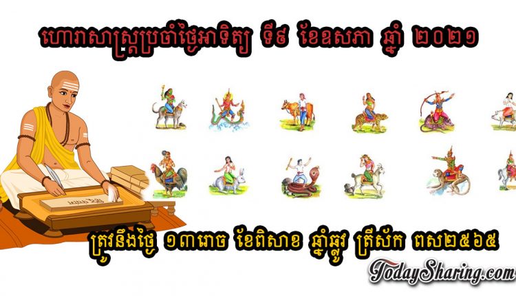 ហោរាសាស្រ្ត ប្រចាំថ្ងៃ អាទិត្យ ទី ០៩ ខែឧសភា ឆ្នាំ ២០២១ ត្រូវនឹងថ្ងៃ ១៣រោច ខែពិសាខ ឆ្នាំឆ្លូវ ត្រីស័ក ពស២៥៦៥