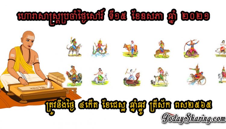 ហោរាសាស្រ្ត ប្រចាំថ្ងៃ សៅរ៍ ទី ១៥ ខែ ឧសភា ឆ្នាំ ២០២១ ត្រូវនឹងថ្ងៃ ៤កើត ខែជេដ្ឋ ឆ្នាំឆ្លូវ ត្រីស័ក ពស២៥៦៥