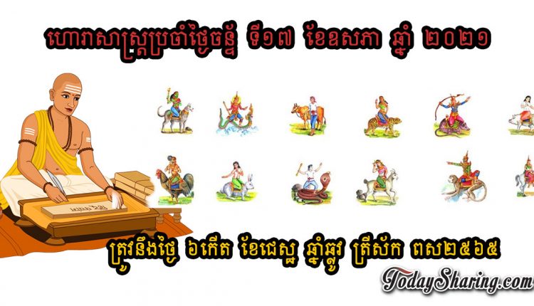 ហោរាសាស្រ្ត ប្រចាំថ្ងៃ ច័ន្ទ ទី ១៧ ខែ ឧសភា ឆ្នាំ ២០២១ ត្រូវនឹងថ្ងៃ ៦កើត ខែជេដ្ឋ ឆ្នាំឆ្លូវ ត្រីស័ក ពស២៥៦៥