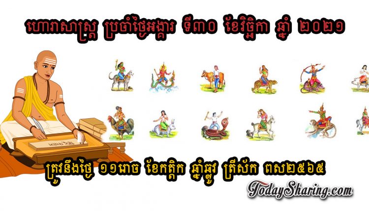 ហោរាសាស្រ្ត ប្រចាំថ្ងៃ អង្គារ ទី ៣០ ខែ វិច្ឆិកា ឆ្នាំ ២០២១ ត្រូវនឹងថ្ងៃ ១១រោច ខែកត្តិក ឆ្នាំឆ្លូវ ត្រីស័ក ពស២៥៦៥