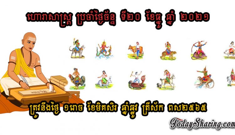 ហោរាសាស្រ្ត ប្រចាំថ្ងៃ ច័ន្ទ ទី ២០ ខែ ធ្នូ ឆ្នាំ ២០២១ ត្រូវនឹងថ្ងៃ ១រោច ខែមិគសិរ ឆ្នាំឆ្លូវ ត្រីស័ក ពស២៥៦៥