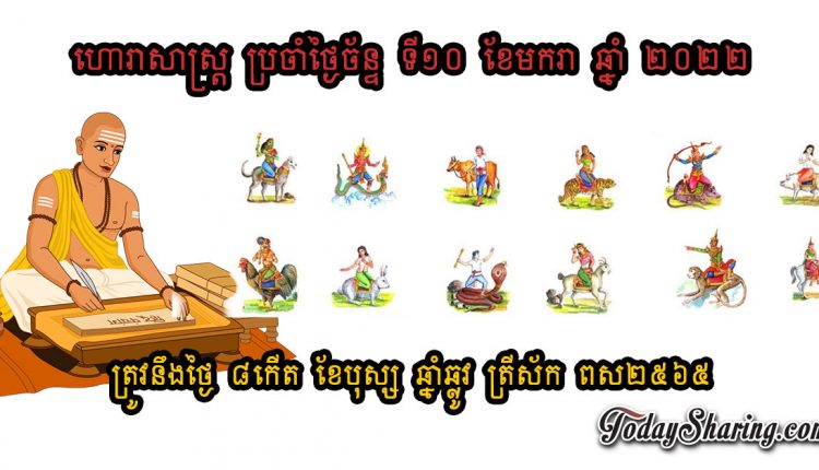 ហោរាសាស្រ្ត ប្រចាំថ្ងៃ ច័ន្ទ ទី ១០ ខែ មករា ឆ្នាំ២០២២ ត្រូវនឹងថ្ងៃ​ ៨កើត ខែបុស្ស ឆ្នាំឆ្លូវ ត្រីស័ក ពស២៥៦៥