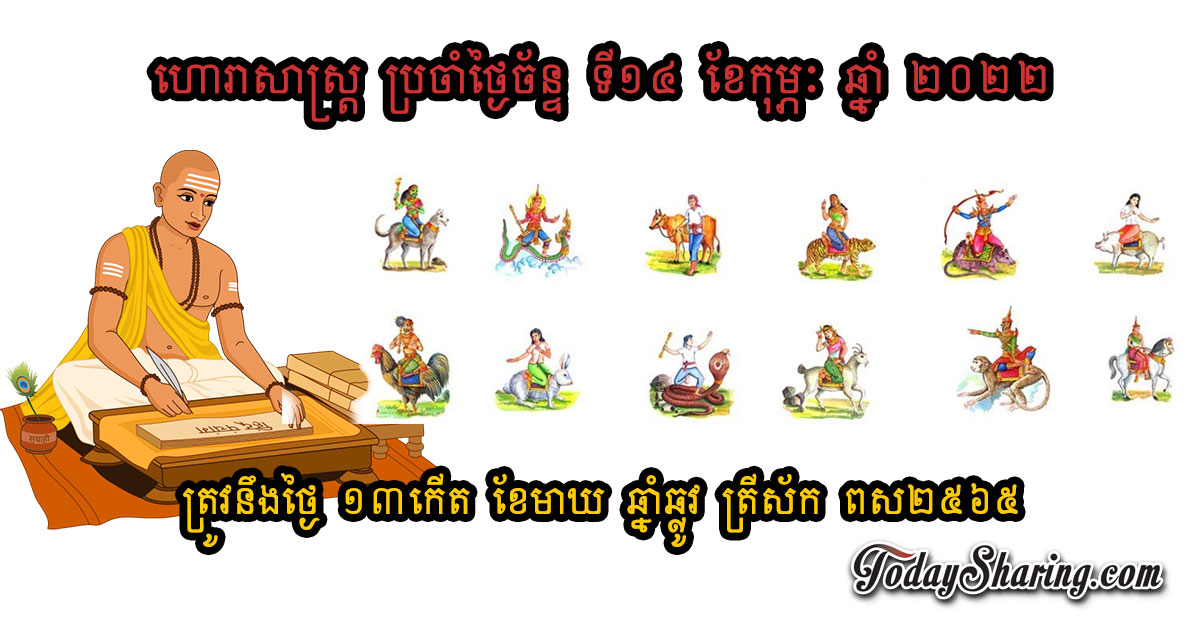 ហោរាសាស្រ្ត ប្រចាំថ្ងៃ ច័ន្ទ ទី ១៤ ខែ កុម្ភៈ ឆ្នាំ ២០២២ ត្រូវនឹងថ្ងៃ ១៣កើត ខែមាឃ ឆ្នាំឆ្លូវ ត្រីស័ក ពស២៥៦៥