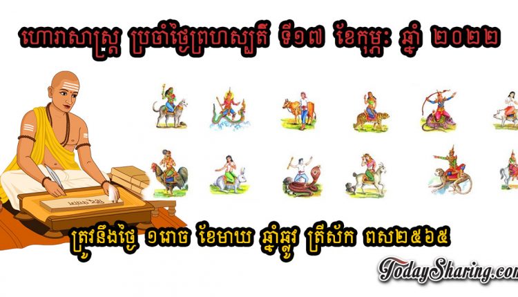 ហោរាសាស្រ្ត ប្រចាំថ្ងៃ ព្រហស្បតិ៍ ទី ១៧ ខែ កុម្ភៈ ឆ្នាំ ២០២២ ត្រូវនឹងថ្ងៃ ១រោច ខែមាឃ ឆ្នាំឆ្លូវ ត្រីស័ក ពស២៥៦៥