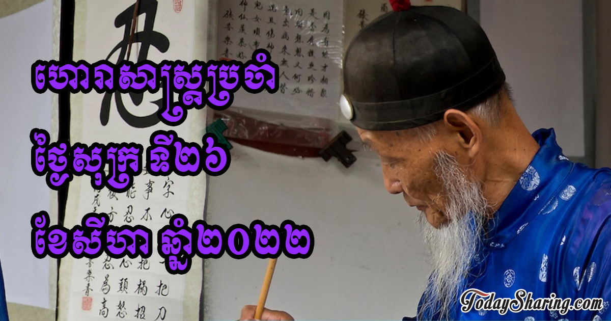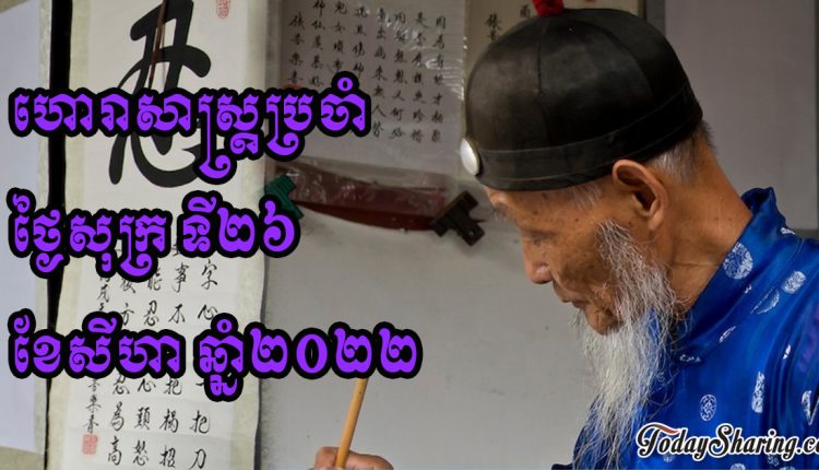 នៅថ្ងៃសុក្រ ទី២៦ ខែសីហា ឆ្នាំ២០២២នេះ គេហទំព័រហោរាសាស្រ្ដចិនបានចុះផ្សាយពីរាសីប្រចាំថ្ងៃនៃអ្នកដែលកើតឆ្នាំទាំង១២ថា៖
