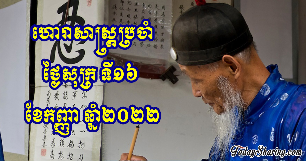 នៅថ្ងៃសុក្រ ទី១៦ ខែកញ្ញា ឆ្នាំ២០២២នេះ គេហទំព័រហោរាសាស្រ្ដចិនបានចុះផ្សាយពីរាសីប្រចាំថ្ងៃនៃអ្នកដែលកើតឆ្នាំទាំង១២ថា៖