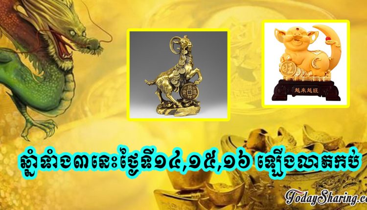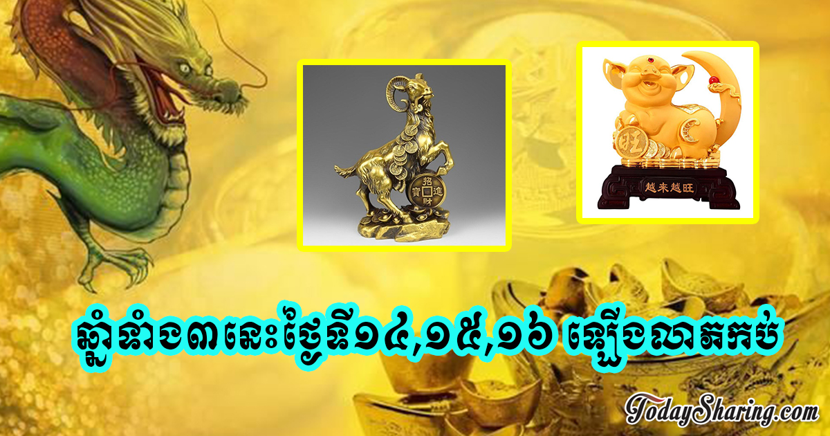 ឆ្នាំរោង៖ នៅថ្ងៃទី១៤,១៥,១៦ ខាងមុខនេះ លោកអ្នកមានលាភមានលុយហូរចូលដូចភ្លៀងធ្លាក់ពីលើមេឃ។ តាមទំនាយកំពូលហោរាចិនបានបង្ហាញថាមានលាភធំលុយធំហូរចូលកាន់តែខ្លាំងរាសីនៃសំណាងឡើងខ្ពស់ត្រដែត បើលោកអ្នកចង់ធ្វើការផ្លាស់ប្តូរអ្វីតែងផ្តល់ផលល្អនិងទទួលបានផ្លែផ្កាតបមកវិញយ៉ាងគាប់ប្រសើរ។ រាល់ការងាររកទទួលទានមានលាភមានលុយចូលច្រើននិងមានអ្នកនាំប្រាក់មកឱ្យដល់ផ្ទះ។