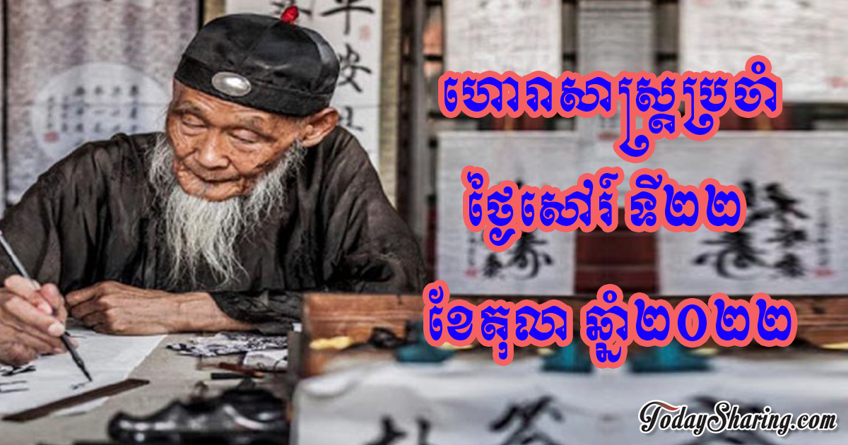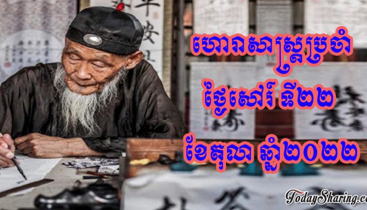 នៅថ្ងៃសៅរ៍ ទី២២ ខែតុលា ឆ្នាំ២០២២នេះ គេហទំព័រហោរាសាស្រ្ដចិនបានចុះផ្សាយពីរាសីប្រចាំថ្ងៃនៃអ្នកដែលកើតឆ្នាំទាំង១២ថា៖