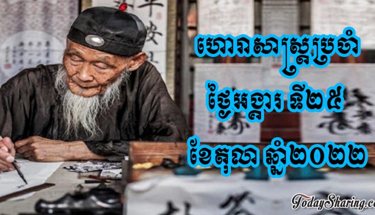 នៅថ្ងៃអង្គារ ទី២៥ ខែតុលា ឆ្នាំ២០២២នេះ គេហទំព័រហោរាសាស្រ្ដចិនបានចុះផ្សាយពីរាសីប្រចាំថ្ងៃនៃអ្នកដែលកើតឆ្នាំទាំង១២ថា៖