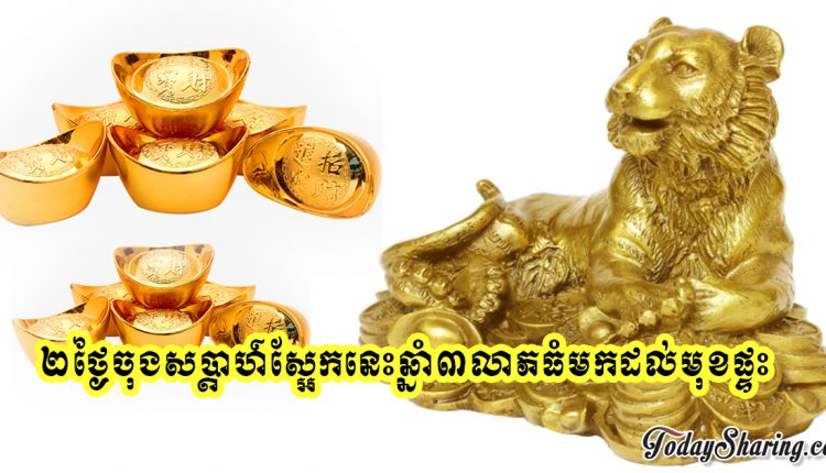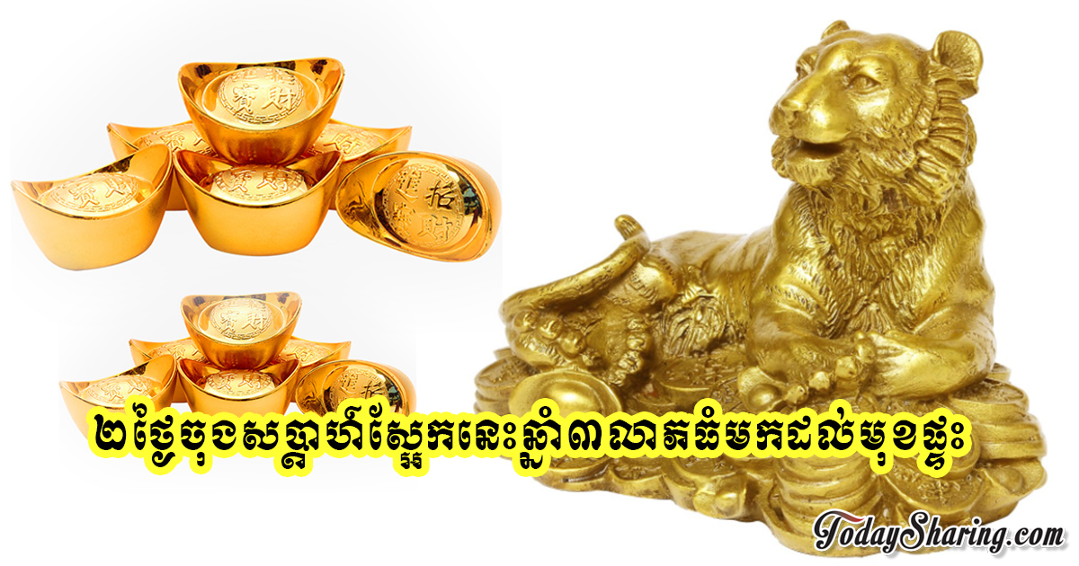 ឆ្នាំខាល៖ នៅ២ថ្ងៃចុងសប្ដាហ៍នេះ ជាពេលវេលាមាសមានលាភមានជ័យមានលុយចូលហូរហៀរ។ រាល់ការងាររកទទួលទានបានផលចូលមកគ្រប់ទិសទីរីឯអ្នករកស៊ីជួញដូរវិញកាក់កបកាន់តែខ្លាំងបើមានការបើកមុខរបរថ្មីផងគឺពិតជាល្អបំផុតសម្រាប់ឱកាសពិសេសនេះ៕