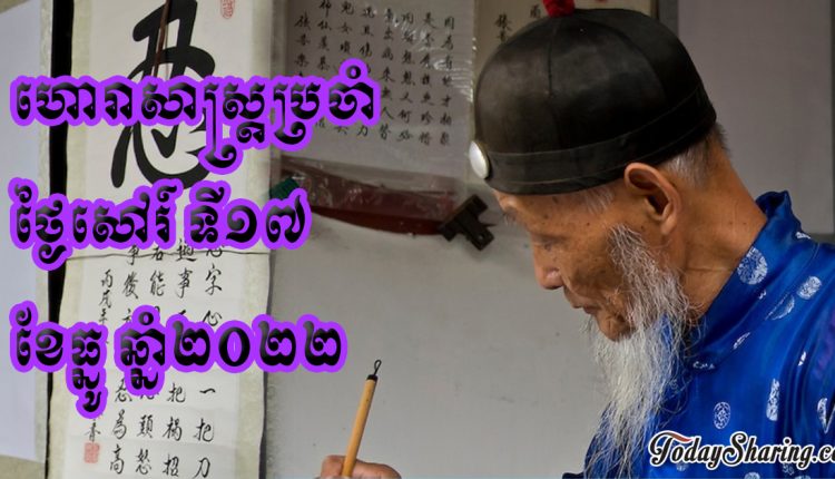 ឆ្នាំខាល៖ រាសីខ្ពស់ត្រដែត។ នៅថ្ងៃនេះដំណើរជីវិតរបស់លោកអ្នកល្អប្រសើរ ម្ល៉ោះហើយ លោកអ្នកអាច នឹងមានក្រុមមនុស្សជួយក្នុងរឿងអ្វីមួយ ហើយពិសេសអាចមានដំណឹងល្អថែមទៀតផង។ក្រៅពីនេះការបំពេញការងារមានការចម្រើនលូតលាស់និងកំពុងកើតវាលកាលត្រជាក់ត្រជុំល្អប្រពៃ។ចំពោះអ្នកប្រកបរបររកស៊ីជួញដូរវិញការចេញធ្វើជំនួញមិនថាផ្លូវគោកផ្លូវទឹកផ្លូវអាកាសក្តីតែងមានភាពសុខដុម ហើយផលកម្រៃទៀតសោតបានគ្រាន់បំពេញឆ្នាំបាយ។ចូរលោកអ្នកធ្វើបុណ្យដាក់ទានខ្លះដើម្បីសន្សំសេចក្តីសុខទៅគ្រាខាងមុខ។ សម្ព័ន្ធស្នេហាប្រុសស្រីកុំគប្បីយកភាពប្រកែប្រកាន់ដាក់ខ្លួនច្រើននាំតែកើតរឿងសៅហ្មងចំពោះគ្នាប៉ុណ្ណោះ៕