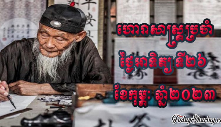 នៅថ្ងៃអាទិត្យ ទី២៦ ខែកុម្ភៈ ឆ្នាំ២០២៣នេះ គេហទំព័រហោរាសាស្រ្ដចិនបានចុះផ្សាយពីរាសីប្រចាំថ្ងៃនៃអ្នកដែលកើតឆ្នាំទាំង១២ថា៖