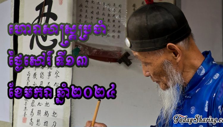 នៅថ្ងៃសៅរ៍ ទី១៣ ខែមករា ឆ្នាំ២០២៤នេះ គេហទំព័រហោរាសាស្រ្ដចិនបានចុះផ្សាយពីរាសីប្រចាំថ្ងៃនៃអ្នកដែលកើតឆ្នាំទាំង១២ថា៖