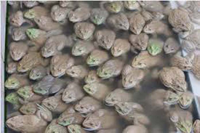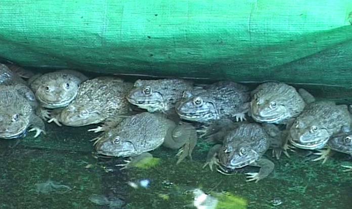 -គួរដាក់ចីញ្ចឹម ៨០ ទៅ ១០០ក្បាល ក្នុងផ្ទៃបាតអាង១ម៉ែត្រការ៉េ, ចាប់កូនកង្កែបណាដេលធំទៅដាក់ចិញ្ចឹមក្នុងអាងផ្សេង ដើម្បីកាត់បន្ថយការស៊ីគ្នា ប្តូរទឹករៀងរាល់មុនឱ្យចំណី គឺនៅពេលព្រឹក និងល្ងាច។