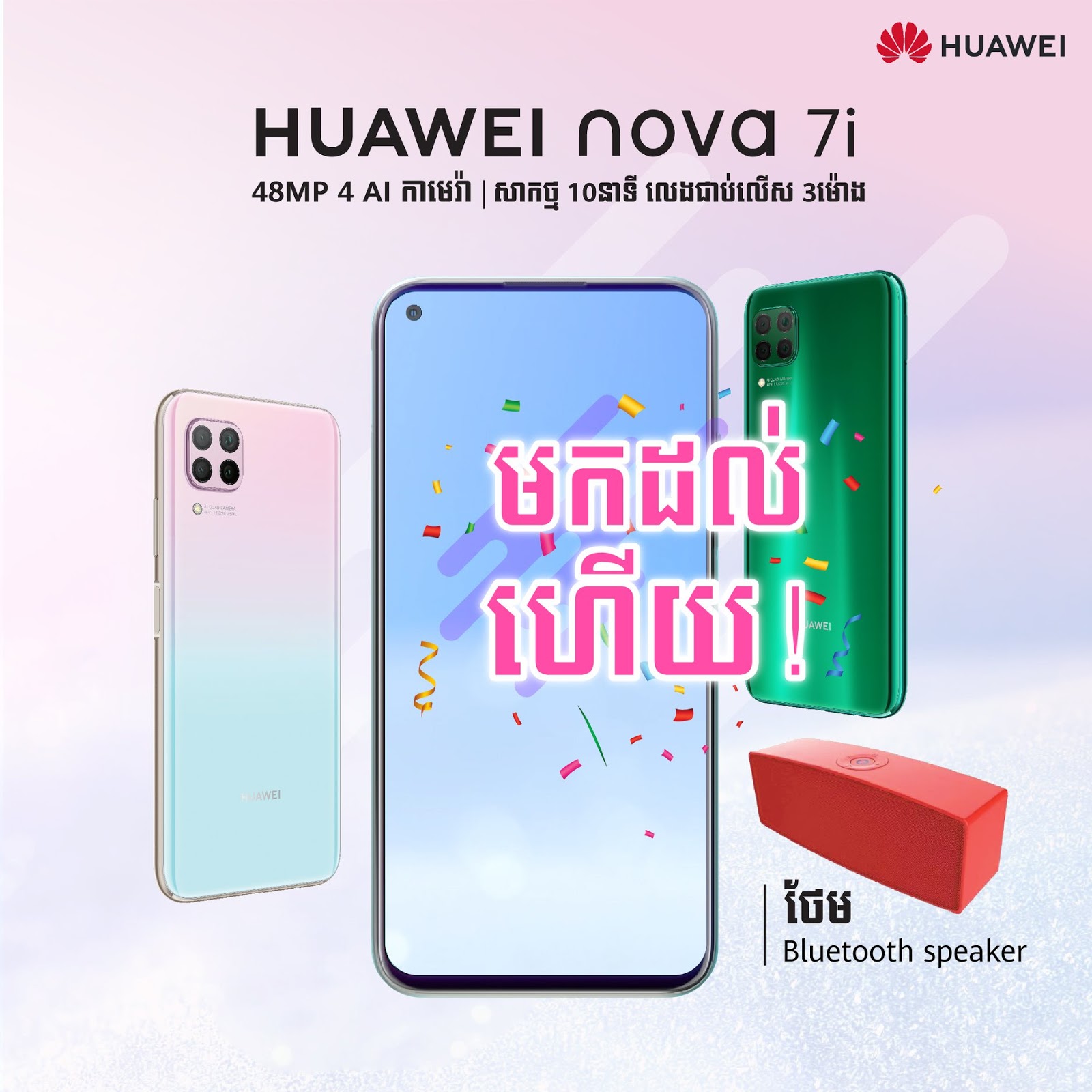 និយាយរួម HUAWEI nova 7i ជាជម្រើសល្អបំផុតសម្រាប់លោកអ្នកចង់ឡើងស៊េរីទូរស័ព្ទថ្មីយកសិរីសួស្តីឆ្នាំថ្មី ​ឬទិញធ្វើជាកាដូសម្រាប់អ្នកមានគុណ និងមនុស្សជាទីស្រឡាញ់ ព្រោះតម្លៃល្អត្រឹមតែ 279$ ថែម Bluetooth Speaker ចំណែកឯសមត្ថភាពវិញល្អមួយចប់តែម្តង! ប្រសិនបើស្ទាក់ស្ទើរអាចអញ្ជើញទៅតេស្តសមត្ថភាពពិត HUAWEI nova 7i នៅតាមបណ្តាញលក់ទូរស័ព្ទនានាទូទាំងប្រទេស។