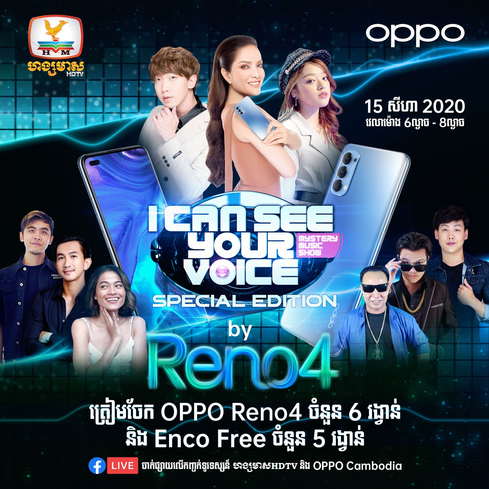 កាលពីថ្ងៃទី15 ខែសីហា យប់មិញនេះ ក្រុមហ៊ុនស្មាតហ្វូន OPPO ដ៏ល្បីល្បាញ និងឈរលំដាប់លេខ1 នៅកម្ពុជា កាលពីឆ្នាំ 2019 បានប្រកាស និងសម្ពោធជាផ្លូវការនូវស្មាតហ្វូនស៊េរីថ្មីបំផុតគឺ OPPO Reno4 ដែលមានតម្លៃត្រឹមតែ $369 ប៉ុណ្ណោះ។ សម្រាប់កម្មវិធីសម្ពោធនេះមានឈ្មោះថា “I Can See Your Voice Special Edition by OPPO Reno4” ក៏មានការ Live ផ្ទាល់តាមរយៈទូរទស្សន៍ហង្សមាស និងផេកផ្លូវការរបស់ក្រុមហ៊ុន OPPO ដោយមានវត្តមានតារាល្បីៗរហូតដល់ទៅ 16រូប ក្នុងនោះក៏រួមមានតារាតំណាង 3រូបឲ្យក្រុមហ៊ុន OPPO ដូចជា អ្នកនាង ពេជ្រ សោភា, លោក Step និងកញ្ញា រ៉េត ស៊ូហ្សាណា ព្រមទាំងតារាកិត្តិយសល្បីឈ្មោះ ជំនាញខុសៗគ្នាជាច្រើនទៀតដូចជា DJ Sdey, H.E.N.G, Raven Blaze, កែវ សុខផេង, ចេននី លោក ហេង វាសនា ជាមួយនឹងគណៈកម្មការវាយតម្លៃល្បីៗរួមមាន នាយក្រឹម, អ្នកនាង គ្រត, ផេនខេក, ខាត់ សុឃីម, លោក រតនៈ ពិសិទ្ធ អមមកជាមួយពិធីករល្បីឈ្មោះពីររូបគឺលោក ជា វិបុល និងលោក រ៉ាស៊ី ដើម្បីពញ្ញាក់អារម្មណ៍ញុំាងកម្មវិធីឲ្យកាន់តែសប្បាយរីករាយ និងកក្រើកឆាកក្នុងកម្មវិធីសម្ពោធនេះ ដើម្បីអបអរការចេញលក់ជាផ្លូវការ និងជោគជ័យរបស់ស្មាតហ្វូនកំពូល OPPO Reno4 ។