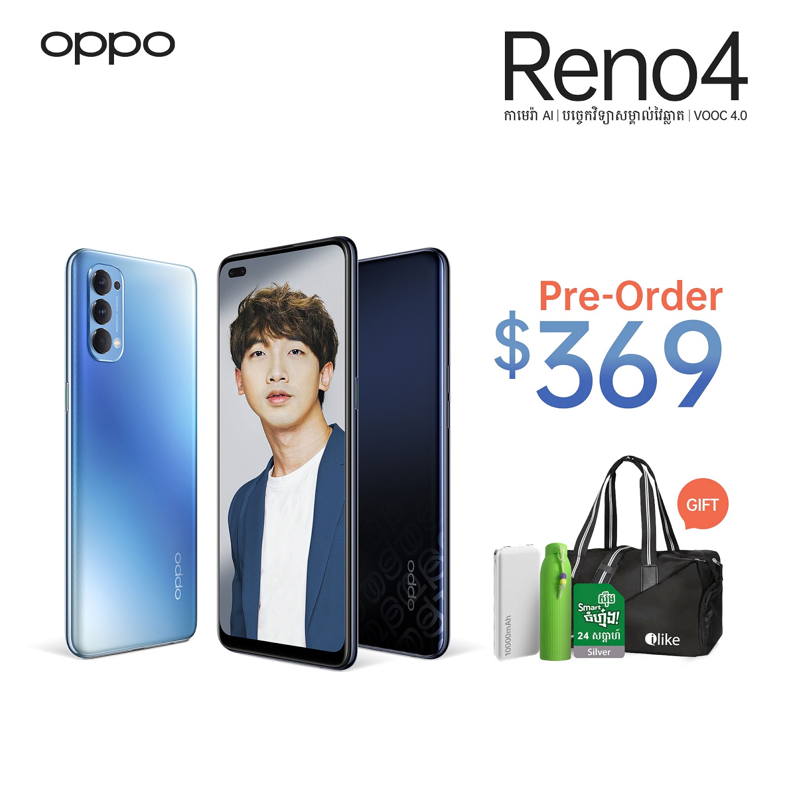 បើតាមការប្រកាសតម្លៃស្មាតហ្វូន OPPO Reno4 កាលពីយប់មិញថ្ងៃ 15 គឺមានតម្លៃ $369 ប៉ុណ្ណោះ អាចនិយាយបានថា គុណភាព និងមុខងារគឺលើសពីតម្លៃតែម្តង ជាមួយនឹងការប្រកាសពីព័ត៌មានលម្អិតនៃការកក់ទុកមុន ចាប់ពីថ្ងៃទី15 ដល់ថ្ងៃទី 21 ខែសីហា ឆ្នាំ2020 នៅតាមបណ្តាហាងលក់ទូរស័ព្ទដែលមានផ្លាក OPPO គ្រប់ខេត្តក្រុង នឹងទទួលបានកាដូសរុបមានតម្លៃប្រមាណ $198 រួមមាន៖ កាបូបសម្រាប់ធ្វើដំណើរ (តម្លៃ $49 ចំនួនមានកំណត់) ដបទឹកដ៏ស្រស់ស្អាត Power Bank 10,000 mAh (តម្លៃ $20) ជាមួយនឹងស៊ីមស្មាតលេខពិសេស Silver (តម្លៃ $129) ភ្ជាប់ជាមួយគម្រោង Smart ធំហ្ម៎ង ប្រើអ៊ីនធឺណែតដោយមិនគិតថ្លៃ 24សប្តាហ៍។