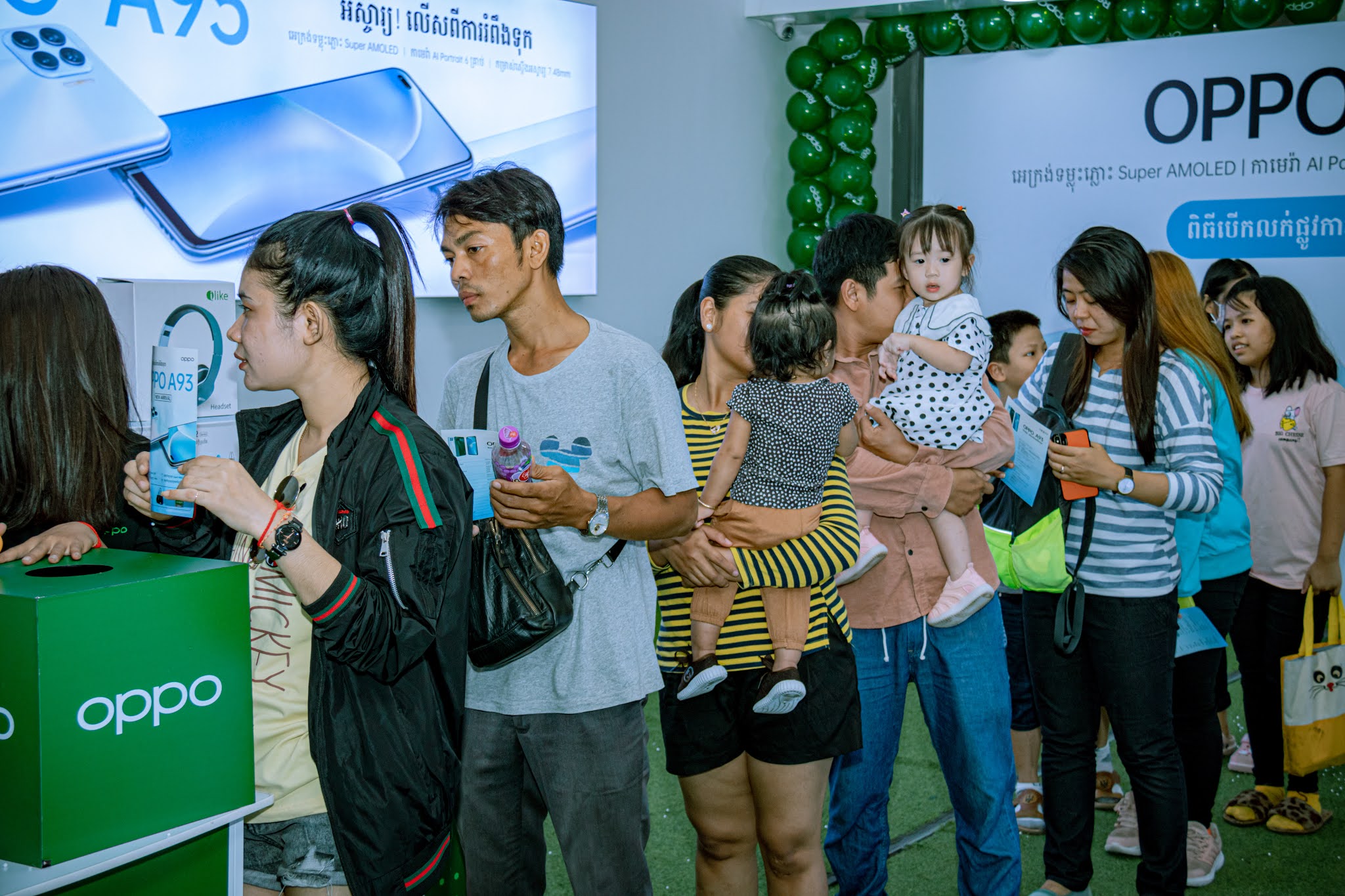 ចំណែកថ្ងៃទី25 ខែតុលា នេះផងដែរក៏សង្កេតឃើញថា ហ្វេនៗ អតិថិជន និងមនុស្សម្នាច្រើនខ្លាំងមែនទែនបានផ្អើលឈូឆរយ៉ាងភ្លូកទឹក ភ្លូកដីដើម្បីទៅចូលរួមក្នុងកម្មវិធីទទួលស្មាតហ្វូន OPPO A93 លើកដំបូងនៅឯហាង OPPO ប៊្រេនស្ត័រ (OPPO Brand Store) ក្នុងផ្សារទំនើបអូរឡាំព្យាជាន់ទី1​។