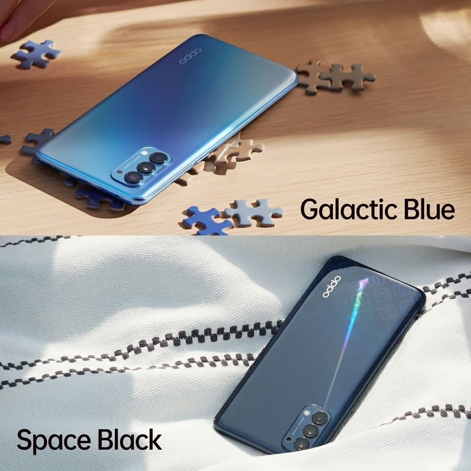 - រចនាបថពណ៌ខាងក្រោយ៖ Reno4 មានជម្រើស ៣ ពណ៌ដ៏រស់រវើកជាមួយនឹង Space Black (ពណ៌ខ្មៅ) បង្ហាញនូវគំនូសម៉ូដដ៏ស្រស់ស្អាតក្នុងលំហងងឹត ដែលរំលេចឡើងនូវក្បូរក្បាច់រចនាដ៏ស៊ីវិល៏យ ពន្លឺភ្លឺចែងចាំង និងរលើបរលោង។ រីឯ Galactic Blue (ពណ៌ខៀវ) គឺជាពណ៌ប្លែកភ្នែកដ៏កម្រ ដែលចែងចាំងប្រៀបបានដូចទៅនឹងសមុទ្រពន្លឺនៃហ្វូងតារាតូចៗ។ ចំណែក Nebula Purple (ពណ៌ស្វាយ) ជាដ៏ ប្លែក សម្រាប់មិត្តៗយុវវ័យ ពិសេសមិត្តនារីៗឃើញភ្លាមដឹងស្រលាញ់ភ្លែតហ្មង៎។