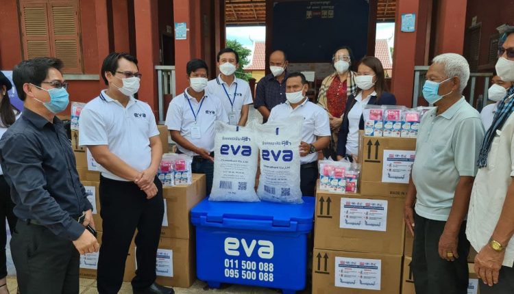លោក Apichart Duang-Art អគ្គនាយកក្រុមហ៊ុន Chamatharn Co, Ltd.(EVA Premium Ice) បានដឹកនាំក្រុមការងារជាច្រើនរូប ដោយបាននាំយកអំណោយជាច្រើន ទៅជួបផ្ទាល់ចៅសង្កាត់រងសិត្បូ ក្រុងតាខ្មៅ ខេត្តកណ្តាលលោក ជូន មន ដើម្បីធ្វើការថ្លែងអំណរគុណ ដែលអាជ្ញាធរគ្រប់លំដាប់ថ្នាក់ក្នុងតំបន់នេះបានខិតខំប្រឹងការងារកន្លងមក ជាពិសេសបានឈ្នះនឹងវិបត្តិកូវិដ១៩ ហើយក៏កំពុងបន្តព្យាបាលដល់ប្រជាពលរដ្ឋប្រមាណ១០០នាក់ដែលបានឆ្លងកូវិដ១៩ ដើម្បីឈានដល់ការបញ្ចប់ព្រឹត្តិការណ៍២០កុម្ភៈបានផងដែរ។