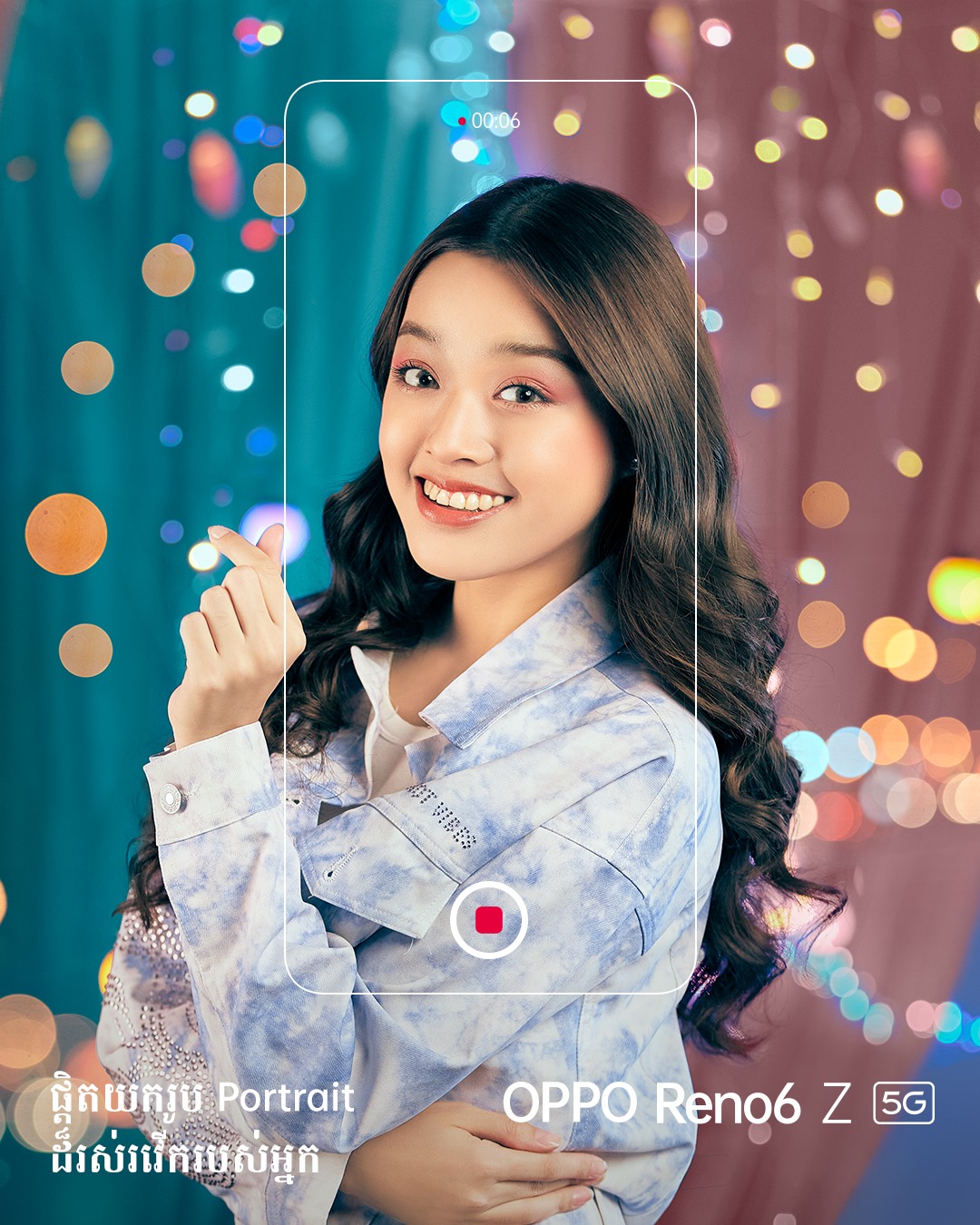 កាលពីមុនអ្នកទាំងអស់គ្នាប្រហែលជាធ្លាប់ឃើញរូបភាពស្អាតៗមានផ្ទៃខាងក្រោយព្រិលៗ និងខ្លះទៀតមានគ្រាប់ពន្លឺភ្លើងតូចៗព្រាលៗ ដែលភាគច្រើនគេតែងថតចេញពីកាមេរ៉ាអាជីពមែនអត់? ពេលនេះអ្នកទាំងអស់គ្នាលែងពិបាកនឹងស្ពាយយកកាមេរ៉ាអាជីពធំៗធ្ងន់ៗតាមខ្លួនទៀតហើយ។ OPPO បាននាំយកស្មាតហ្វូនត្រកូល Reno Series ម៉ូដែលថ្មីចុងក្រោយគេបង្អស់គឺ OPPO Reno6 Z 5G ដែលហ្វេនៗ អតិថិជន និងអ្នកនិយមស្រលាញ់ប្រ៊េន OPPO ប្រាកដជាបានដឹងរួចមកហើយថា OPPO Reno Series គឺតែងតែនាំមុខគេលើបច្ចេកវិទ្យាថតបែប Portrait ដ៏ទាន់សម័យ ទាក់ទាញ និងអាចផ្តិតយករូបភាពលេចធ្លោៗគ្រប់វិនាទីរបស់លោកអ្នកមិនឲ្យរំលងឡើយ។