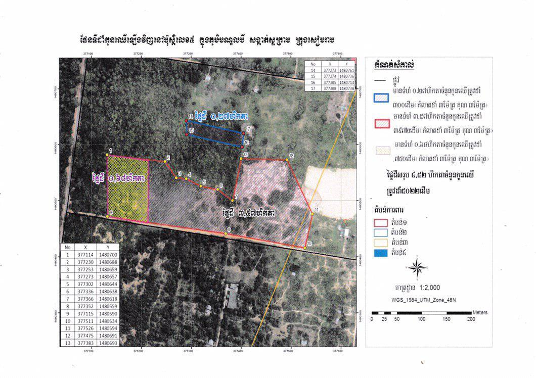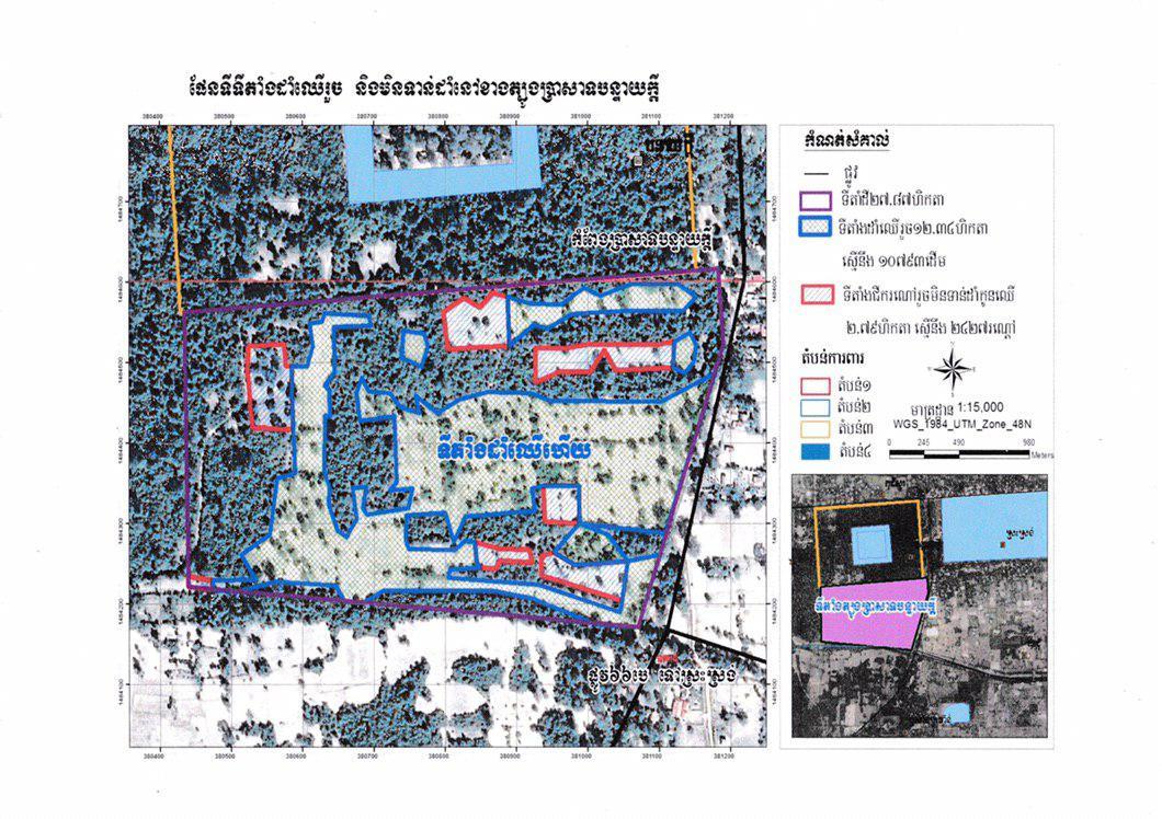ទីតាំងសំខាន់ៗដែលត្រូវដាំដើមឈើមានចំនួន៦កន្លែង៖ ខាងកើតប្រាសាទប្រិយ៍ បរិវេណប្រាសាទព្រះគោ ខាងត្បូងប្រាសាទបន្ទាយក្តី ភូមិមណ្ឌលបី សង្កាត់ស្លក្រាម ក្រុងសៀមរាប តាមដងផ្លូវពីមុខប្រាសាទអង្គរវត្តឆ្ពោះទៅព្រលានយន្តហោះអន្តរជាតិខេត្តសៀមរាប និងនៅតាមដងផ្លូវពីស្រះស្រង់ឆ្ពោះទៅព្រះដាក់។
