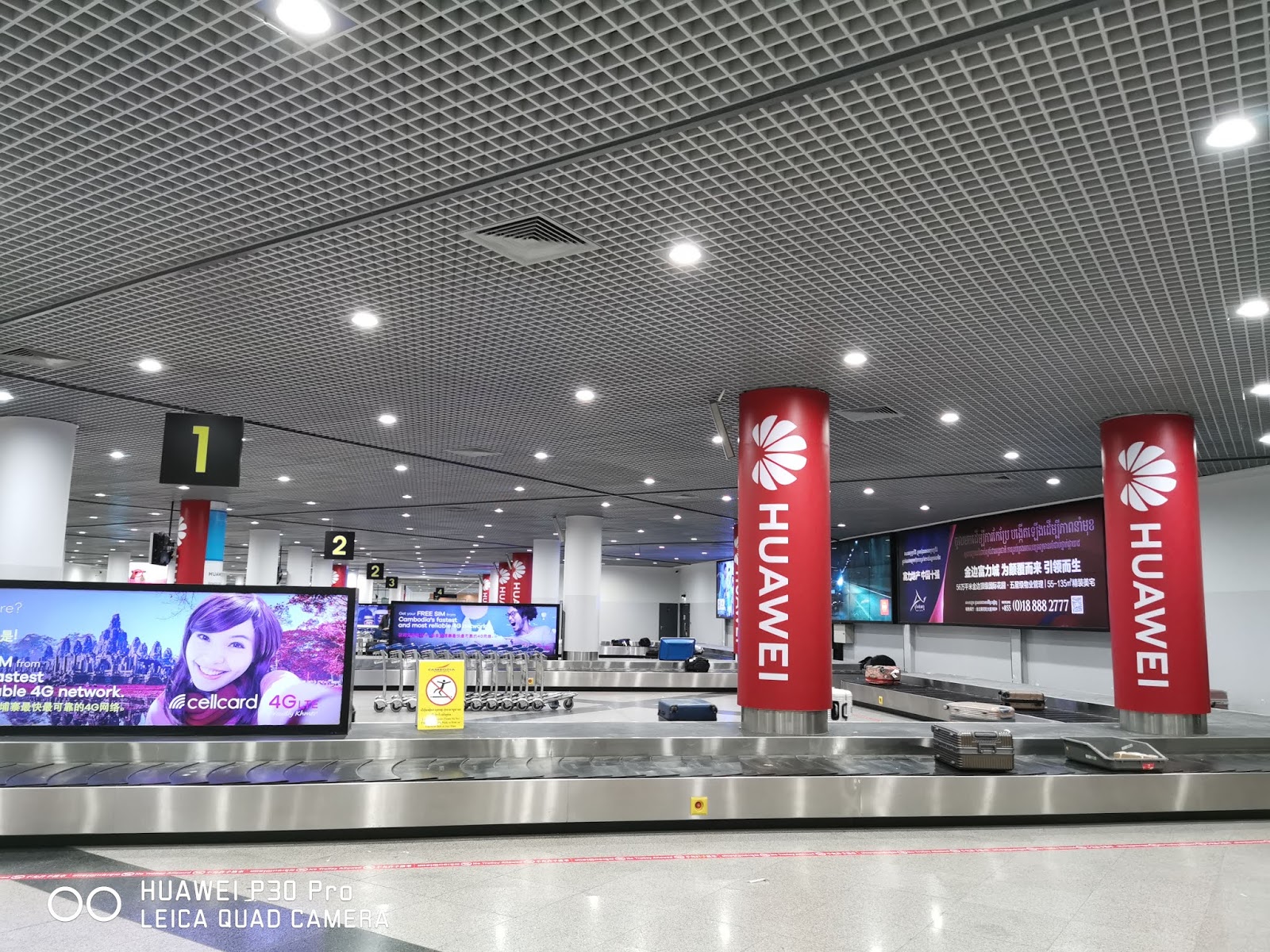 ភ្នំពេញ ថ្ងៃទី 4 មិថុនា ឆ្នាំ 2019 ៖ ញាក់សាច់តែម្តង សម្រាប់ការផ្សព្វផ្សាយរបស់ក្រុមហ៊ុន Huawei លើកនេះ! ក្រុមហ៊ុន Huawei បានធ្វើការផ្សព្វផ្សាយទ្រង់ទ្រាយធំ នៅព្រលានយន្តហោះអន្តរជាតិភ្នំពេញនៅសសរជាច្រើននៃកន្លែងយកឥរ៉ាន់របស់អ្នកដំណើរ។ហីឡើងក្រហមដាច់កន្ទុយភ្នែកតែម្តង សម្រាប់ការផ្សព្វផ្សាយនេះ ជាពិសេសការផ្សព្វផ្សាយស្មាតហ្វូន P30 សេរ៊ី ដែលអាចហ្សូមដល់ឋានព្រះច័ន្ទ និងជាម៉ូដែលដែលទទួលបានការពេញនិយមបំផុត