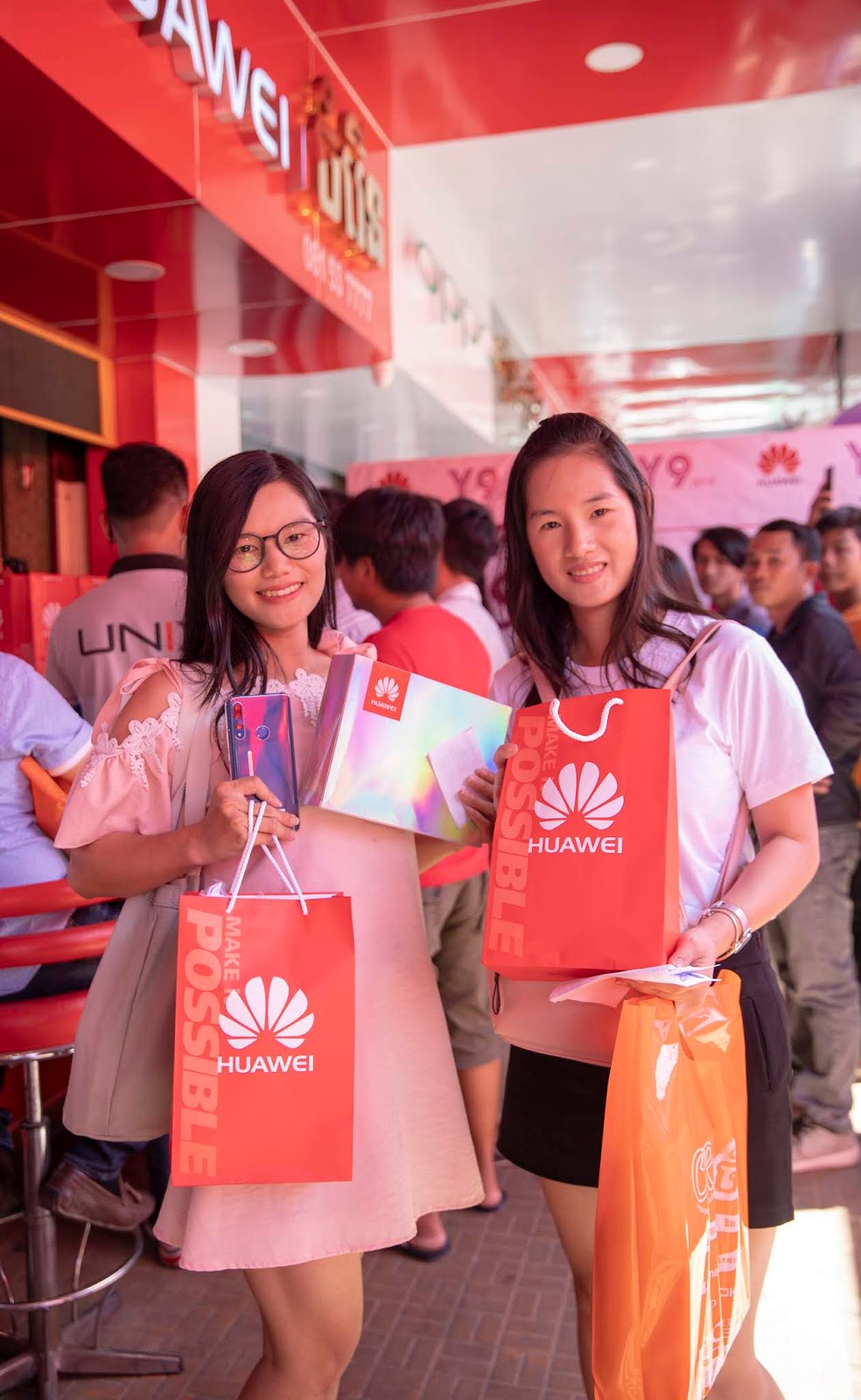 Huawei Y9 2019 បានបំបែកកំណត់ត្រា ទទួលបានការកុម្ម៉ង់ទិញទុកមុនលើសពីការរំពឹងទុក ច្រើនលើសលុប ជាពិសេសទទួលបានការគាំទ្រខ្លាំងយ៉ាងគំហុក រហូតដល់អតិថិជនតំរង់ជួររង់ចាំទិញបែបនេះ។ រឹតតែពិសេសទៀតនោះ អ្នកចូលរួមតំរង់ជួរទាំងអស់ក៏មានឱកាសជួប និងថតរូបផ្ទាល់ ជាមួយអាយដូលក្នុងដួងចិត្ត ដែលជាតារាតំណាងផ្សព្វផ្សាយរបស់ក្រុមហ៊ុន Huawei គឺអ្នកនាងឱក សុគន្ធកញ្ញា និង លោកនីកូ ។