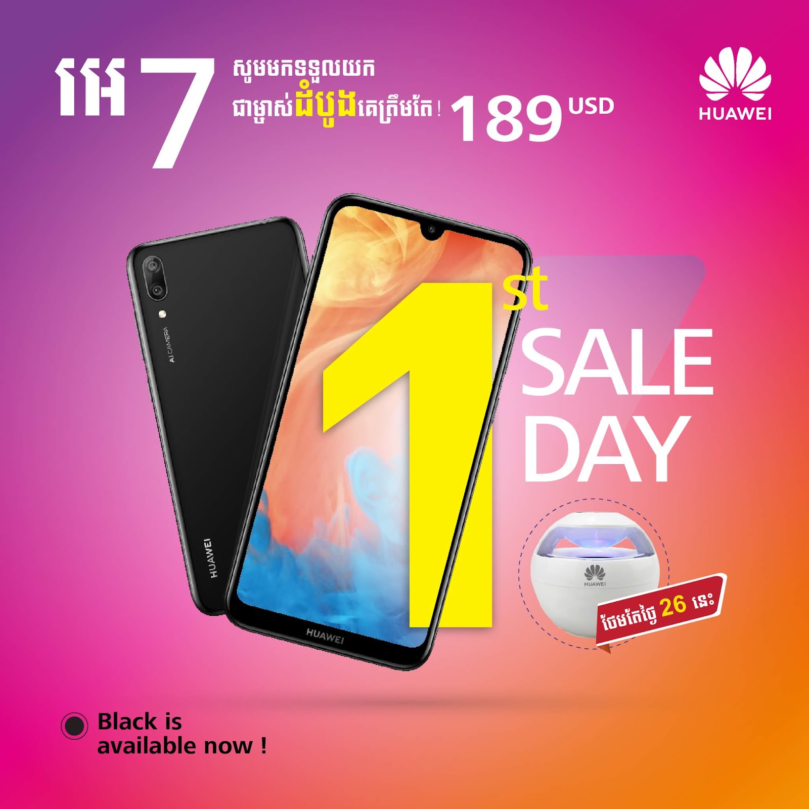 គួរបញ្ជាក់ផងដែរថា ស្មាតហ្វូន ​អេ​​ 7 មានតម្លៃត្រឹមតែ $189 nova3 Lite តម្លៃ $259 nova3i តម្លៃ​​ $299 និង nova3​​តម្លៃ$469។  ប្រញាប់ឡើងប្រូម៉ូសិនពិសេសមិនធ្លាប់មាននេះ ចាប់ផ្តើមពីថ្ងៃ 26 មករា ដល់ថ្ងៃ 27 មេសា ឆ្នាំ 2019​ សម្រាប់រាល់ការជាស្មាតហ្វូនទាំងបួនម៉ូដែលនៅតាមបណ្តាហាងដៃគូរបស់ Huawei នៅទូទាំងប្រទេស។