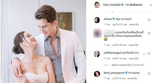 “Someone i care was born today” ហើយខាងប្រុសក៏ចូលទៅឆ្លើយតបវិញថា “Thank you na kub” តែអត្ថន័យនៃរូបភាពដែលបានផុសនេះធ្វើឲ្យហ្វេនៗអ្នកគាំទ្រត្រូវមករីករាយជាមួយយ៉ាងច្រើននិងនៅមានការបង្អាប់ដល់អ្នកទាំងពីរទៀតថា រូបភាពដែល Bow នេះផ្អែមល្ហែមដល់ថ្នាក់មើលមិនដឹងថាជាការជូនពរថ្ងៃកំណើតទេព្រោះមើលមួយភ្លែតទៅដូចជារូបភាពថ្ងៃមុនរៀបការខ្លាំងណាស់