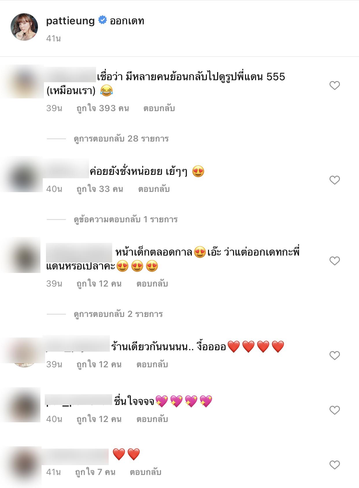 ដោយភាពធូរស្រាលនេះកើតឡើងនៅពេលខាងប្រុសបានផុសរូបភាពខ្លួនឯងនៅហាងអាហារមួយ មានឃ្លាប្រាប់ថា “ណាត់ជួប” ហើយអ្នកគាំទ្រដង្ហែគ្នាសួរថាទៅជាមួយអ្នកណា ទៅជាមួយកញ្ញា Pattie មែនទេ